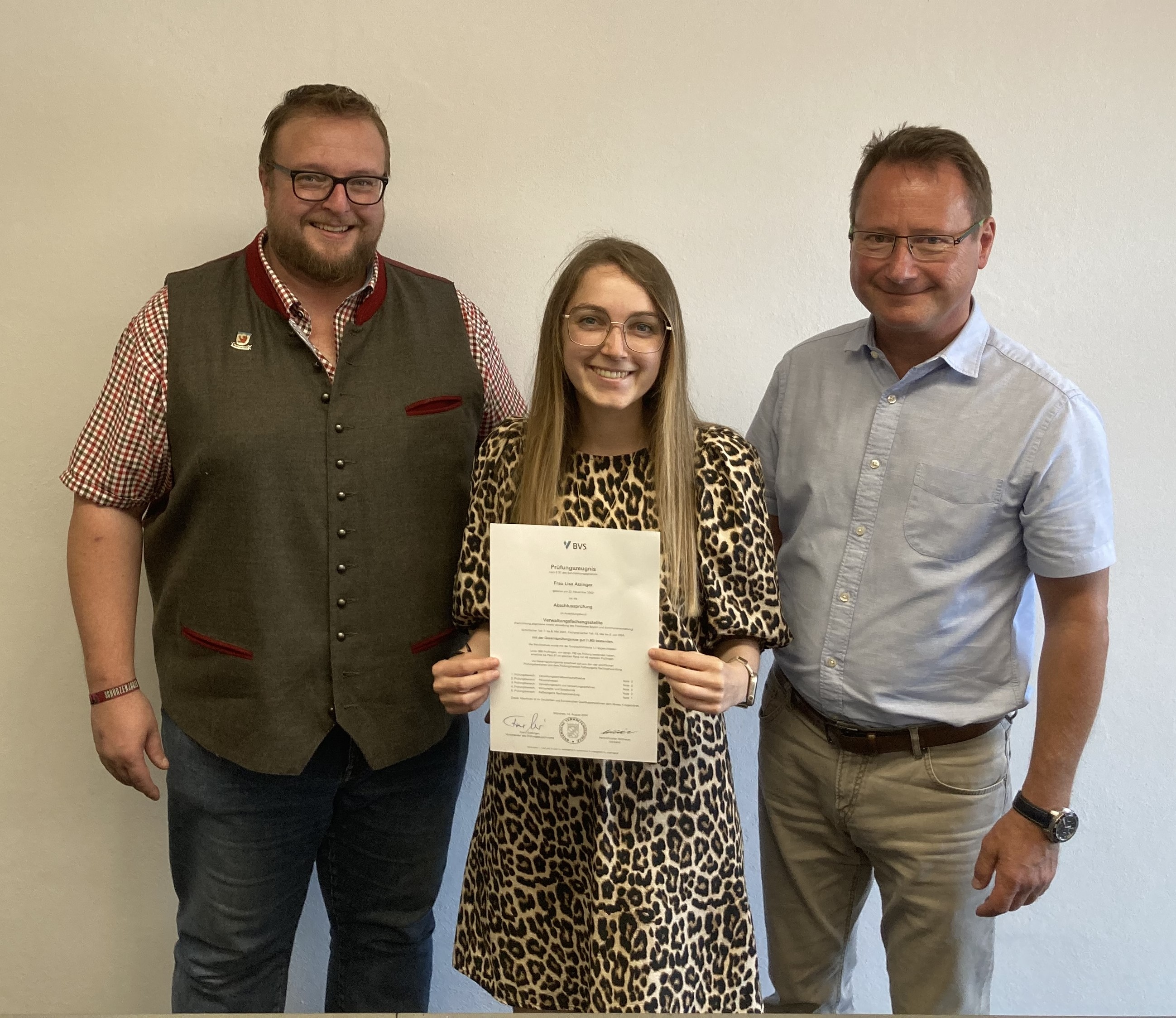 Meldung vom 05.09.2024 Frau Lisa Atzinger hat aktuell äußerst erfolgreich ihre Ausbildung zur Verwaltungsfachangestellten beendet. Frau Atzinger wird im Sachgebiet Bauamt / Ordnungsamt eingesetzt.