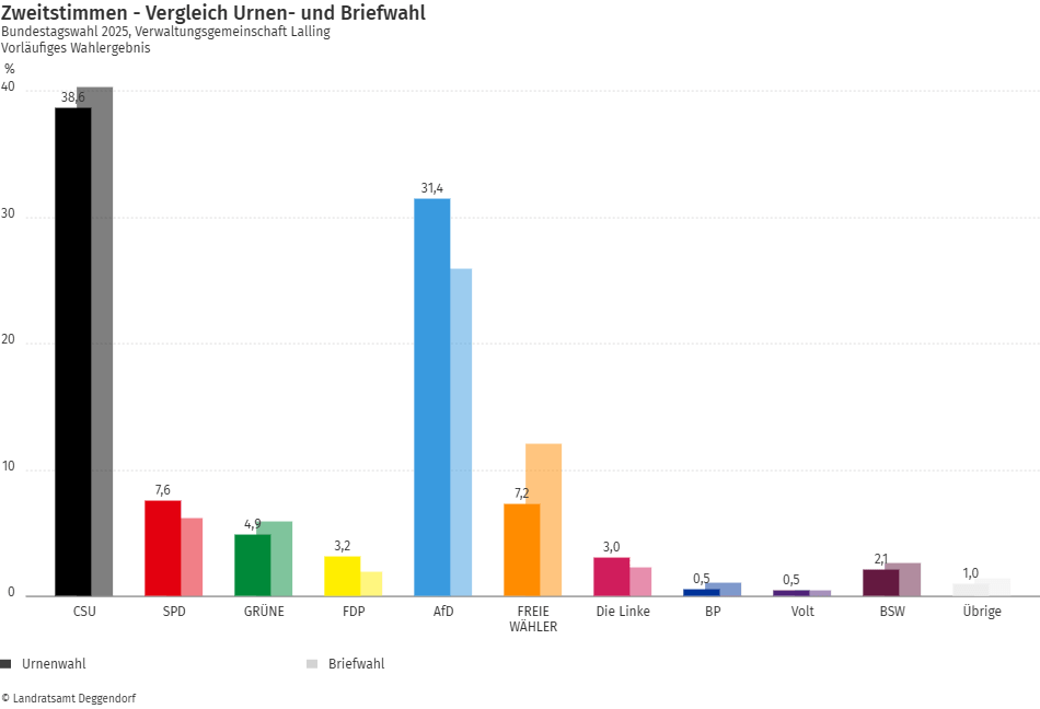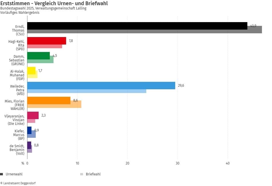 Meldung vom 25.02.2025 Hier finden Sie die Ergebnisse der Bundestagswahl 2025 von der Verwaltungsgemeinschaft Lalling