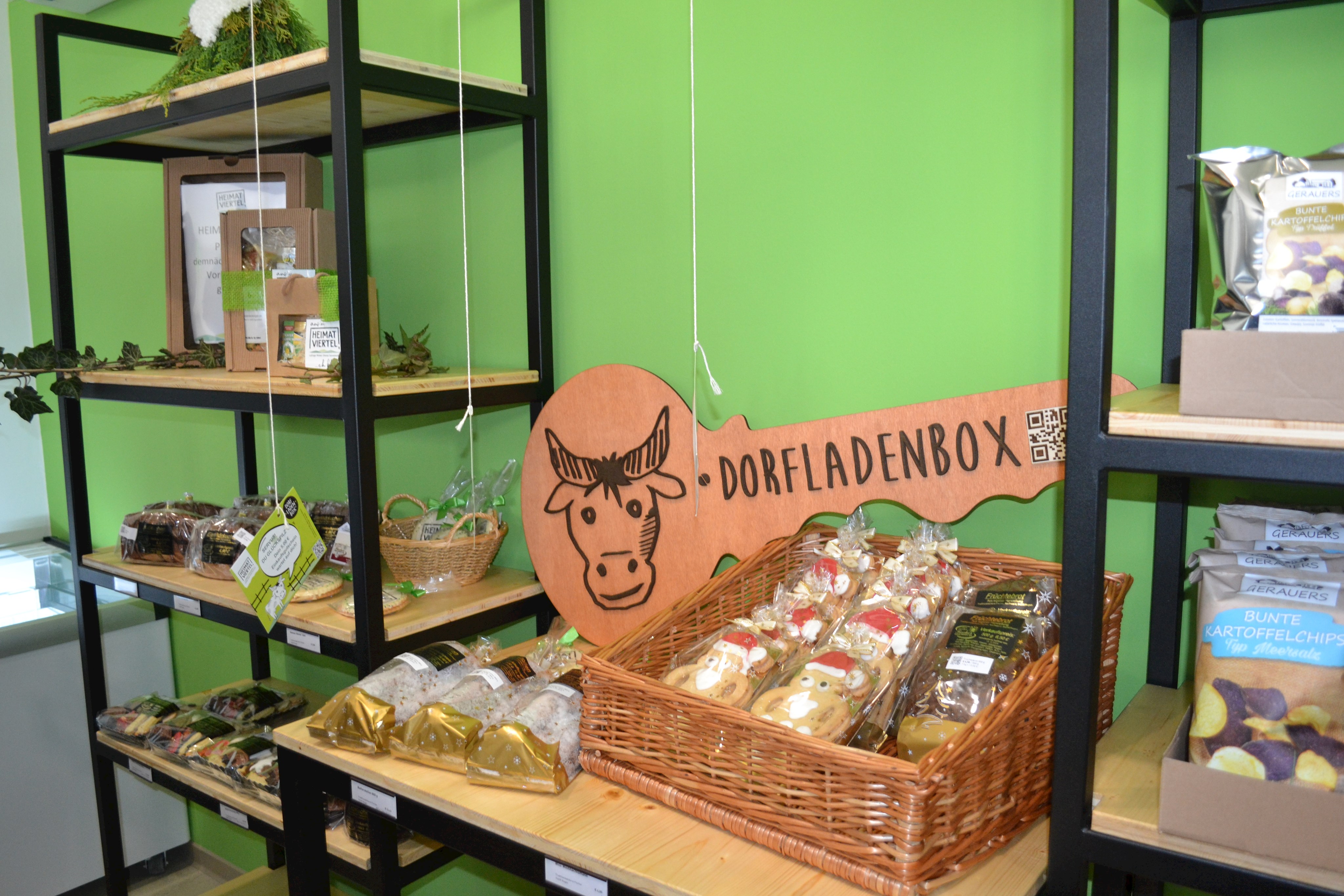 Mit frischen Backwaren ist die Bäckerei-Konditorei Fischer aus Regen in der Dorfbox vertreten. Zur Eröffnung angeboten wurden Stollen, frische Gebäckstücke, Plätzchen und am Sonntag als Eröffnungsgruß Frühstückssemmeltüten – gratis zum Mitnehmen.